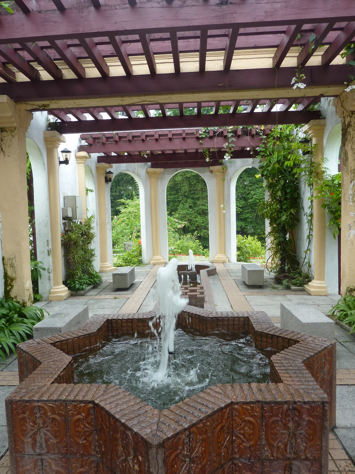 Mercredi c’est grasse matinée, tout le monde est crevé ! Nous déjeunons dans un resto mexicain situé dans le grand shopping center, et offrant une jolie vue sur le parc séparant notre hôtel du centre commercial. Il y a même un plan d’eau avec un spectacle de jets d’eau.