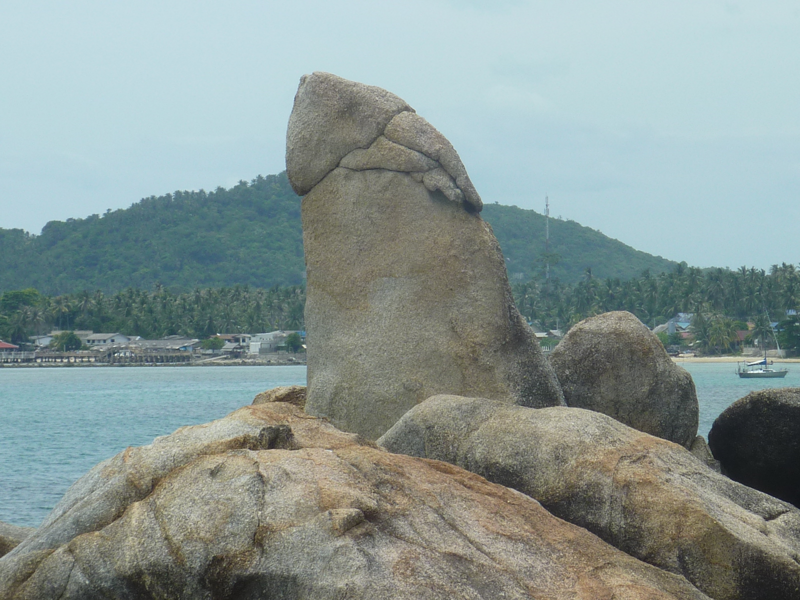 Nous remontons donc chacun dans notre minibus, avant de nous retrouver dix minutes plus tard pour la curiosité la plus olé-olé de Koh Samui… J’ai nommé « Grand-Papa Hin Ta et Grand-Maman Hin Yai ». Il s’agit d’un ensemble de belles formations rocheuses au bord de l’eau, parmi lesquelles deux – un rocher dressé et une faille entre deux autre rochers – sont particulièrement suggestives…